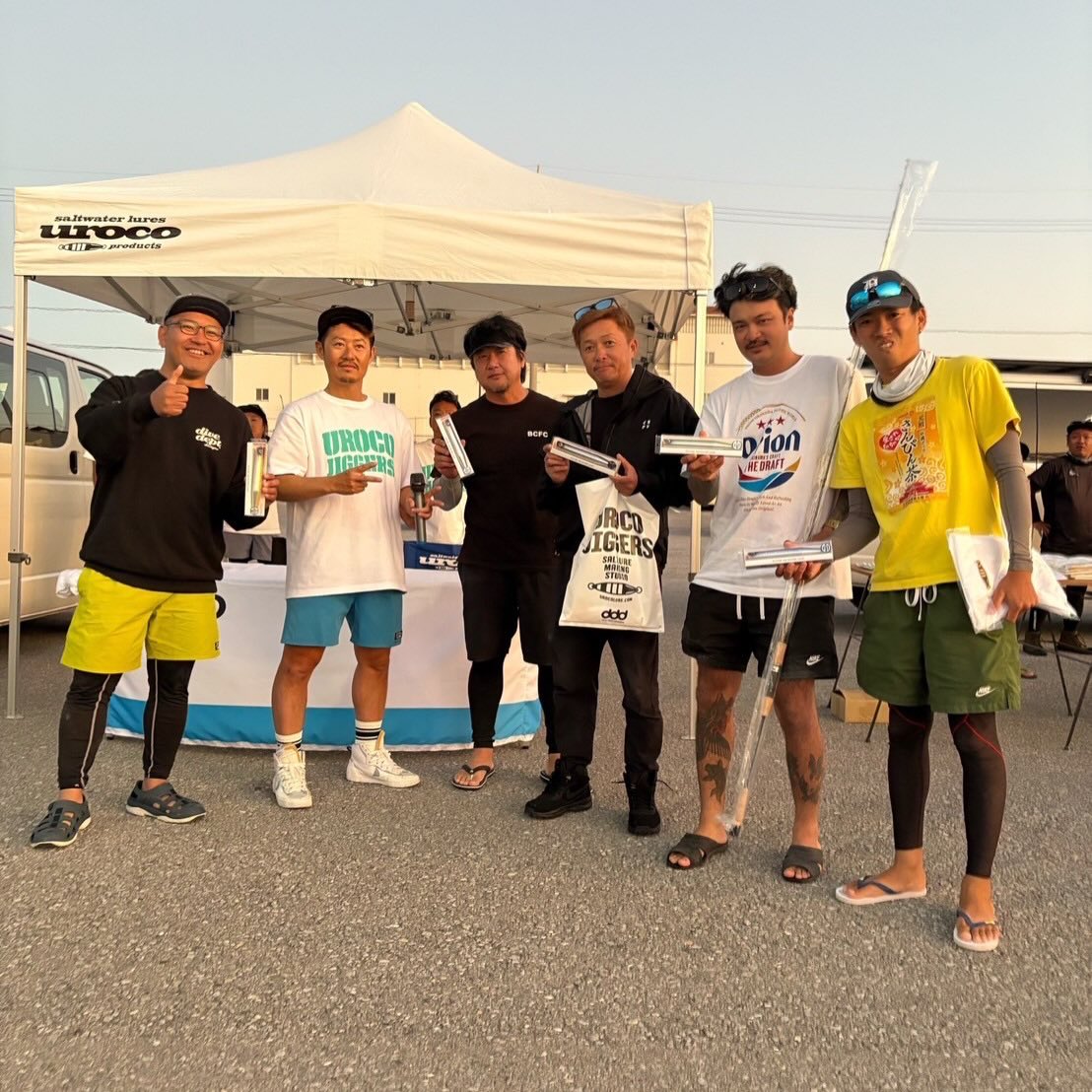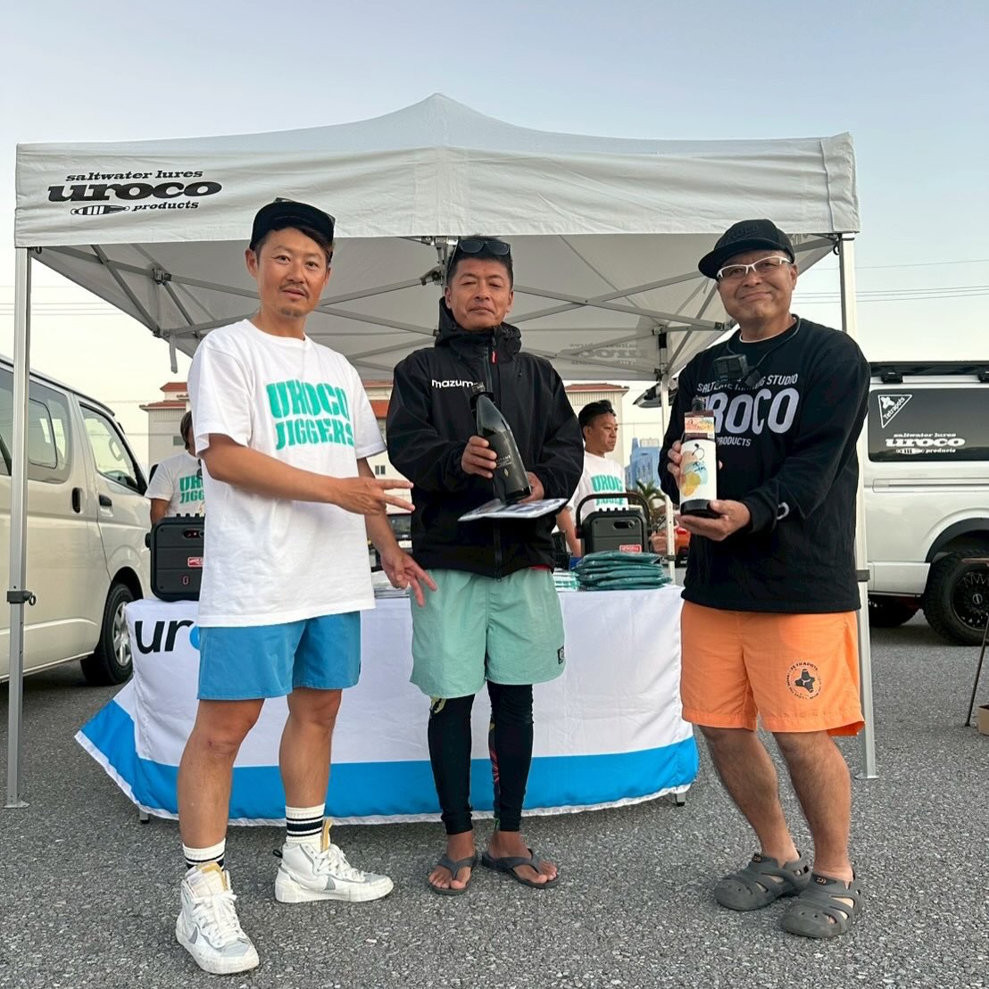 根魚、他魚の部で優勝した方達。賞品のウロコオリジナルロッド!おめでとうございます!