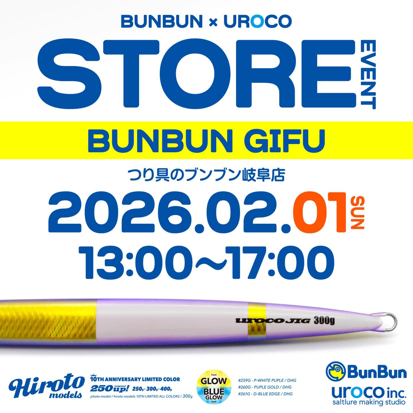 ウロコジグオリジナル/ヒロトカラーやウロコアパレルの先行販売、新製品、プロト製品の展示、3300円以上お買い上げでガチャチャレンジができるご購入特典あり。